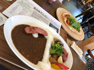 ミチヤリーダー、レイナさん、ジュリさん、よっしーさん、ひろさんの女性5人で藻岩山後に、いつもの八剣山の農園でズッキーニの収穫。八剣山ワイナリーのマルシェで「定山渓ダムカレー」を食べました!何と!ごはんはダムの形のところだけです!女性向けです!