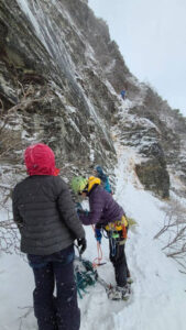 途中H大学山岳部・探検部・ワンゲル部のパーティーに会いました。今回の山頂は1600m台地で撤退です。ガスってきました。