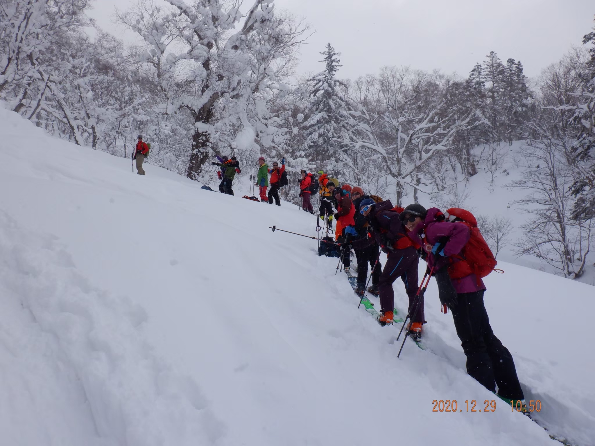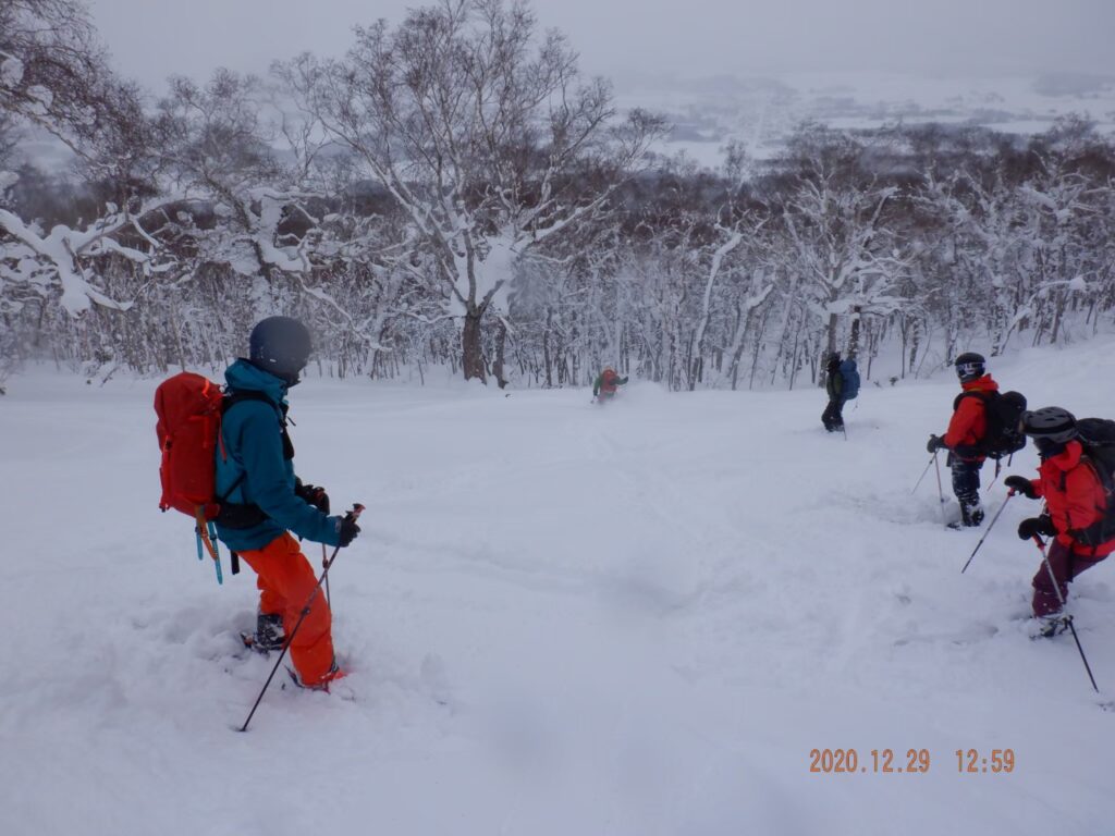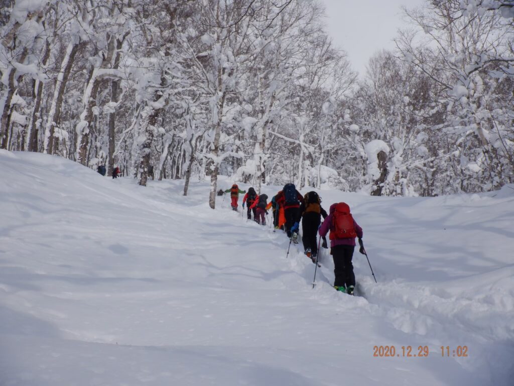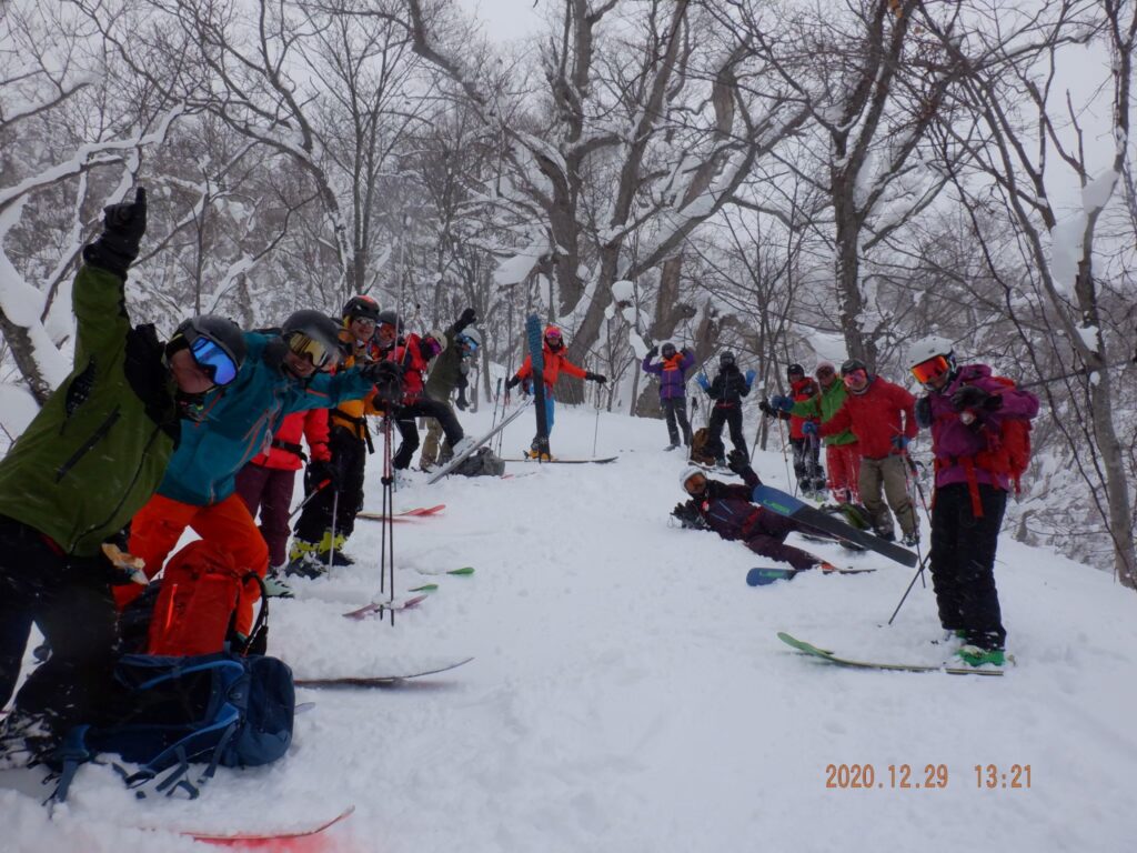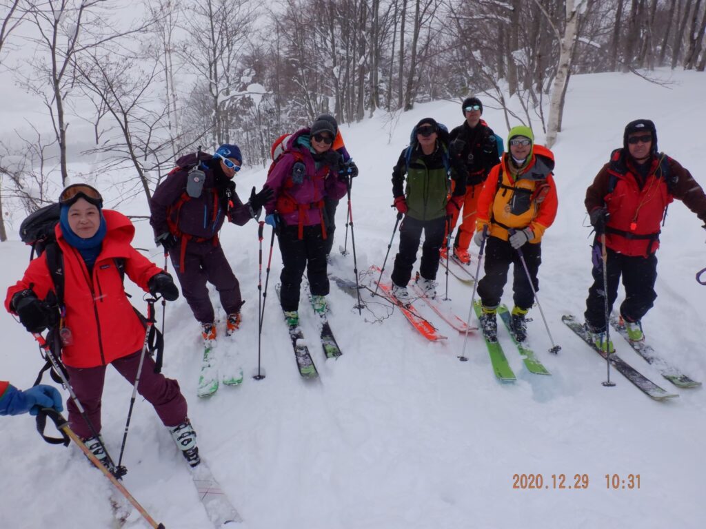 2020年12月29日 / 最終更新日時 : 2023年12月20日 smilemountain 山スキー 羊蹄山墓地の沢コース 12月29日羊蹄山墓地の沢コース、3パーティー16名で登りました。雪は上々。1100までハイクアップ。 滑る際には離れて三密を避けて滑りました。