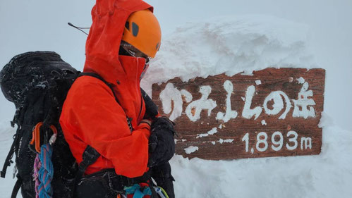 カミホロ界隈4回目にして初ピークのTちゃん(写真)。アイゼン&ピッケル体験会→氷雪入門→化物登攀→上富良野岳ピーク…、逆もあるけど着々成長していますね。スマイルMCは基礎から上級まで教えてくれる良い山岳会ですね(笑)。