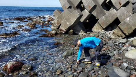 下の写真は、利尻島西岸の栞橋の河口です。Sea to Summit を目指してスタートです。