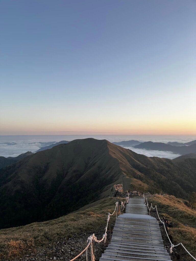 5/31-6/1 百名山の1つ、四国、徳島県の剣山に登ってきました。直近の台風情報と梅雨の事もあって登山者は少なくピークまで誰にもすれ違いませんでした。ヒュッテ泊まりは私以外に2組程でだんだん晴れていく様子に気持ちも高揚しピークでは360度の雲海と隣の山、次郎笈に続く美しい尾根。沈む夕日、星空、日の出全てがため息の出る美しさでした。