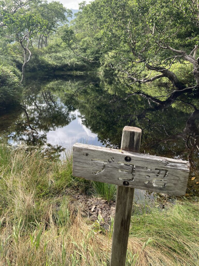 朝から終始雨だったので全身ずぶぬれになりましたが、風はなく、ときおり日本画の世界に迷い込んだような幻想的な景色に出会い、思わず皆で感嘆の声をもらしながら慎重に下山しました。
