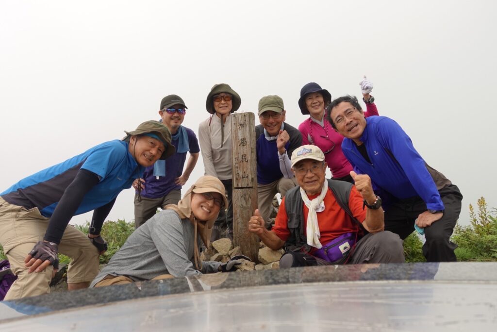 雨は降ることなく、時折晴れ間も見え、無事山頂にたどりつけました。