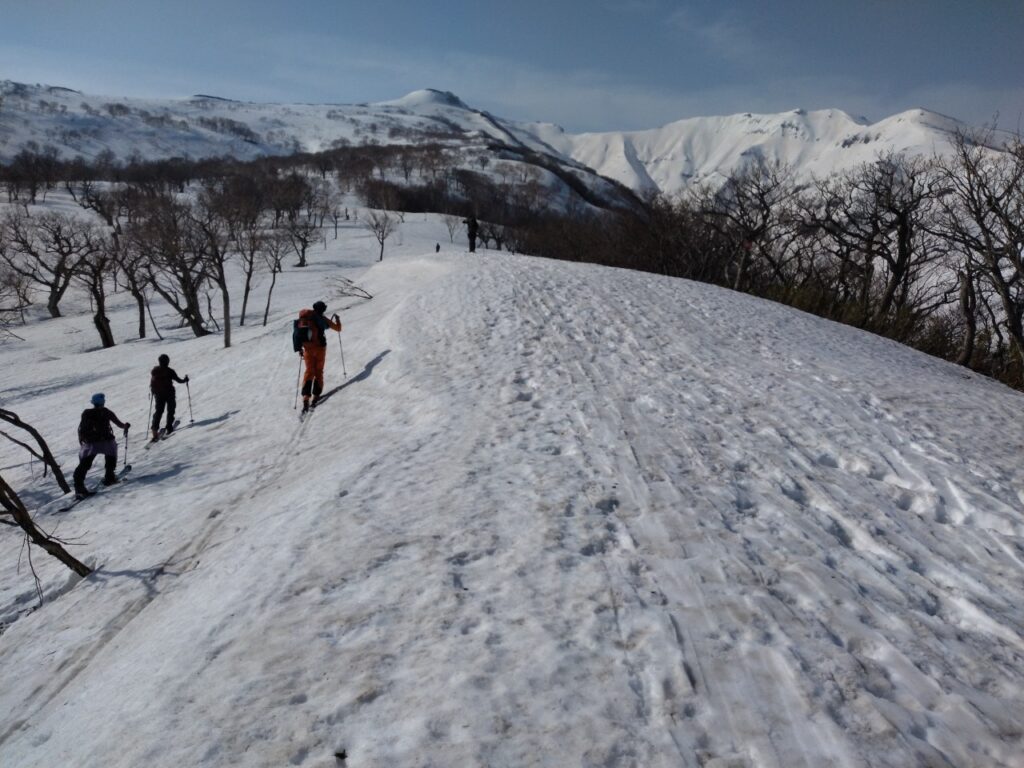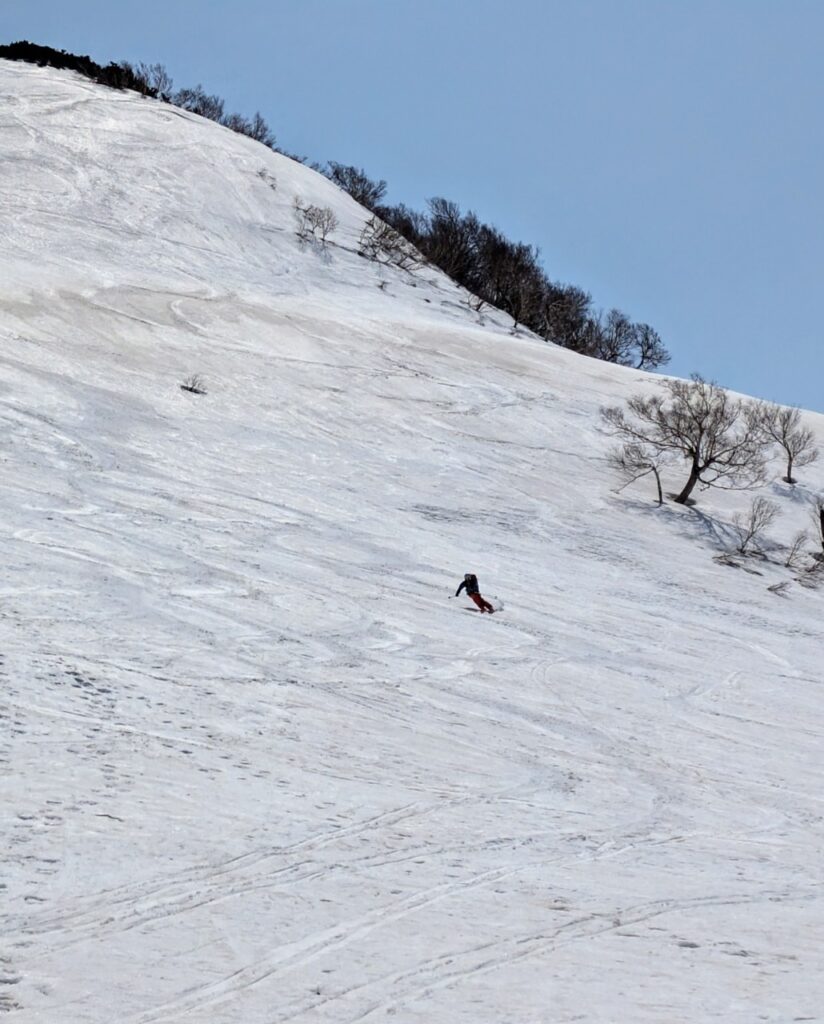 大斜面は左側を巻きながら登っていくと、雪がつながっていました。
