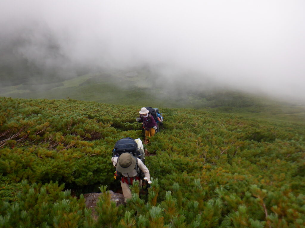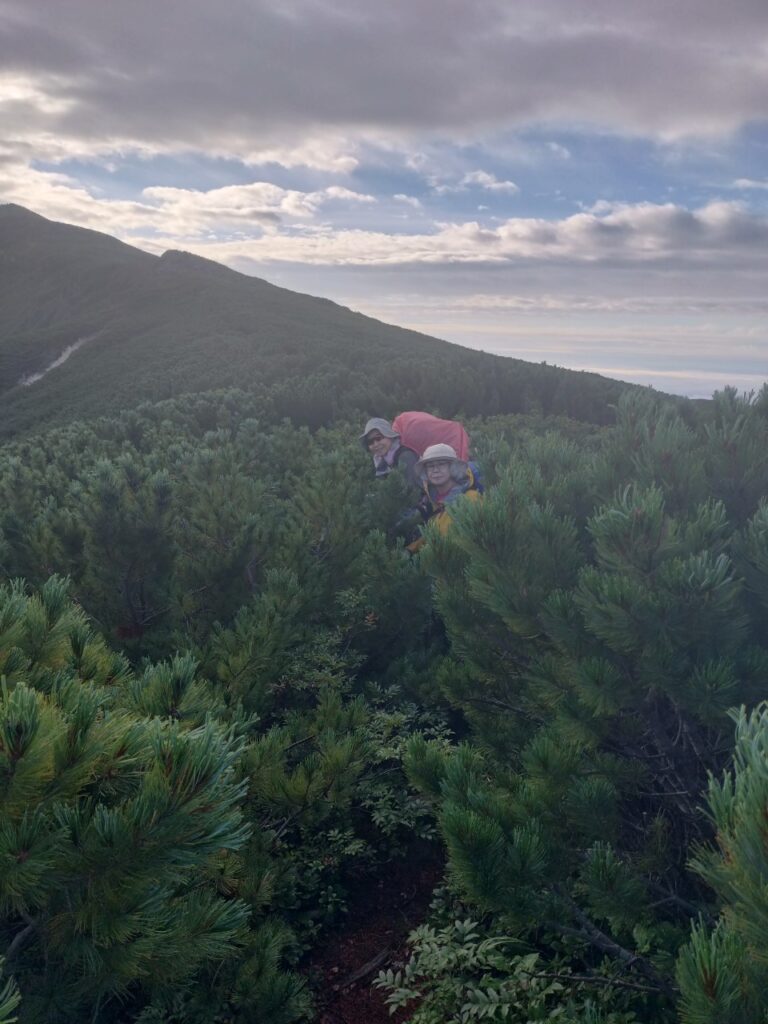起きて早々のハイマツの藪漕ぎも、景色が見えると気持ちよく感じます。