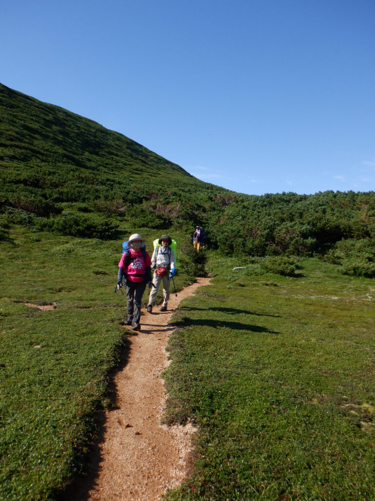 三ツ峰、サシルイ岳、オッカバケ岳を越えて、本日の宿泊地二ツ池に16時半到着。