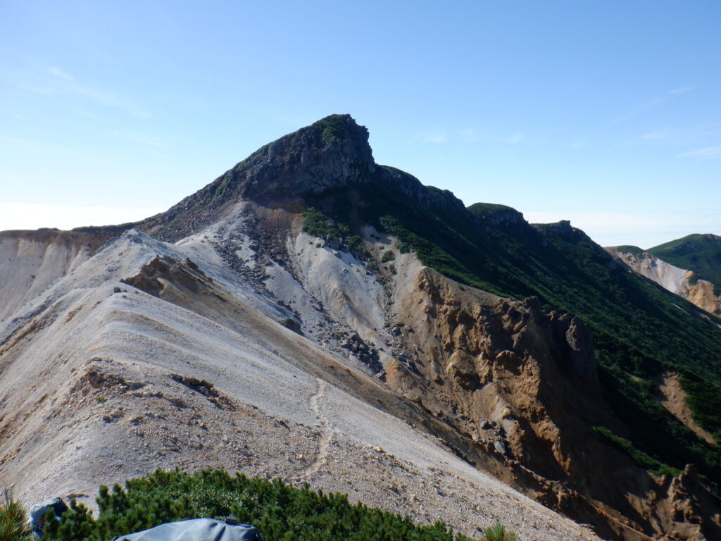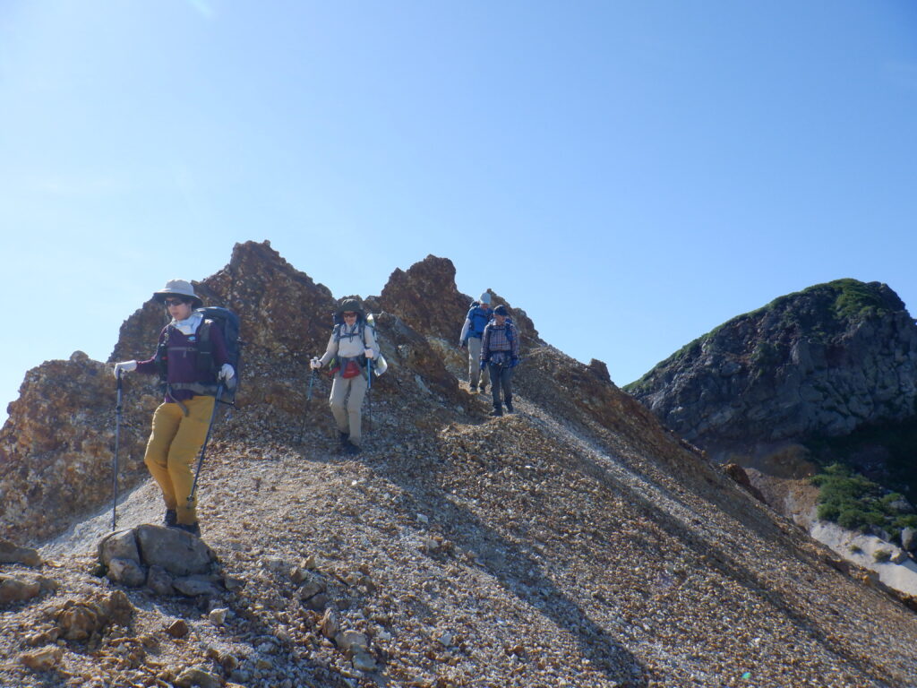 風もなく穏やかな天気となり、微妙なザレ場のトラバースや細尾根も注意しながら安全に通過することができました。