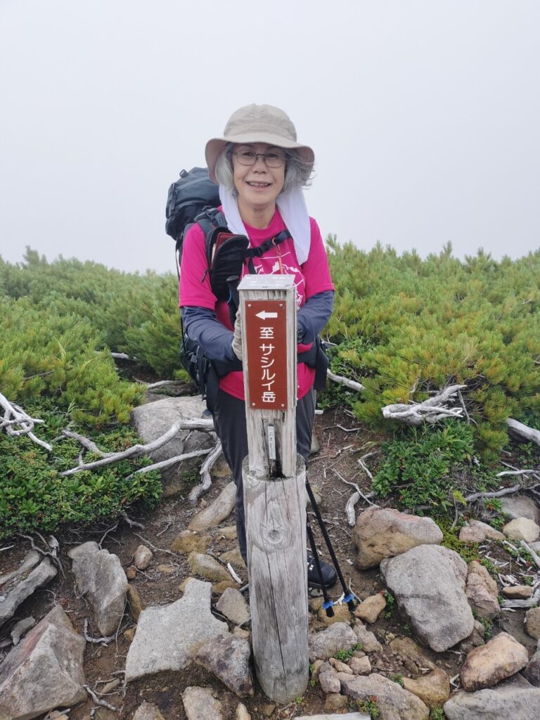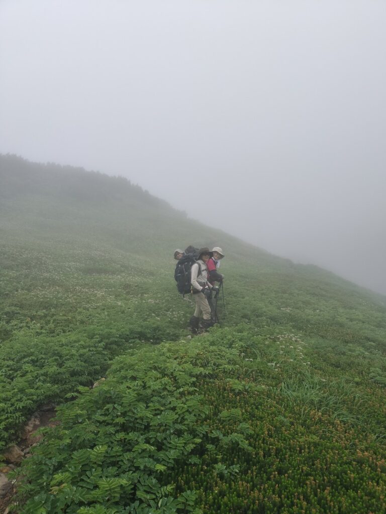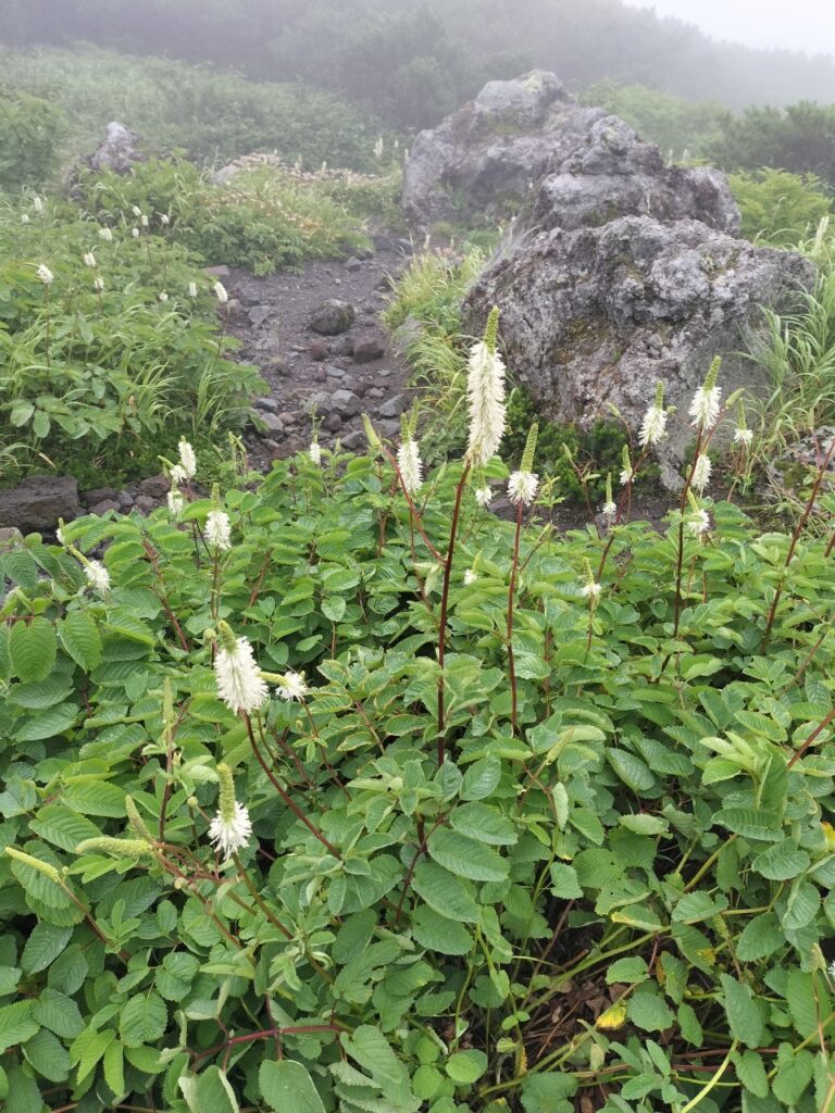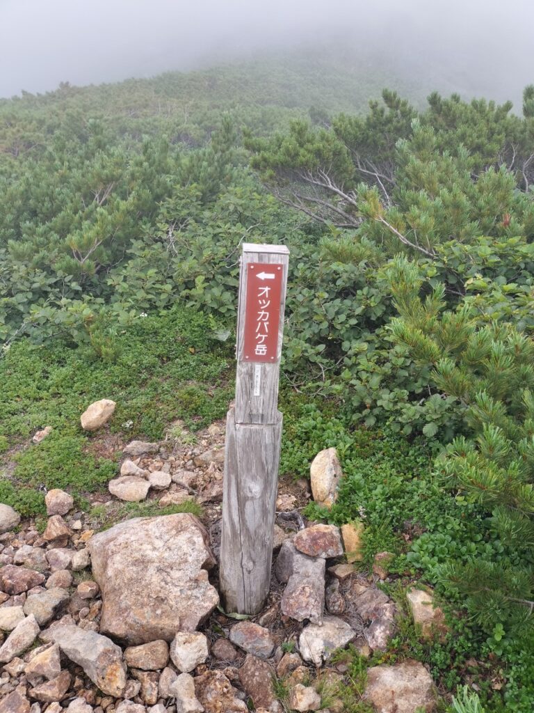 羅臼岳山頂でもガスは晴れず、すごい数の虫の攻撃にあって記念写真だけ撮って早々に次に向かいます。