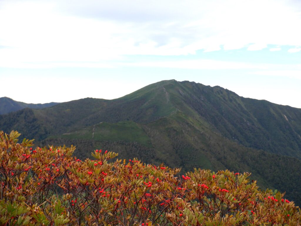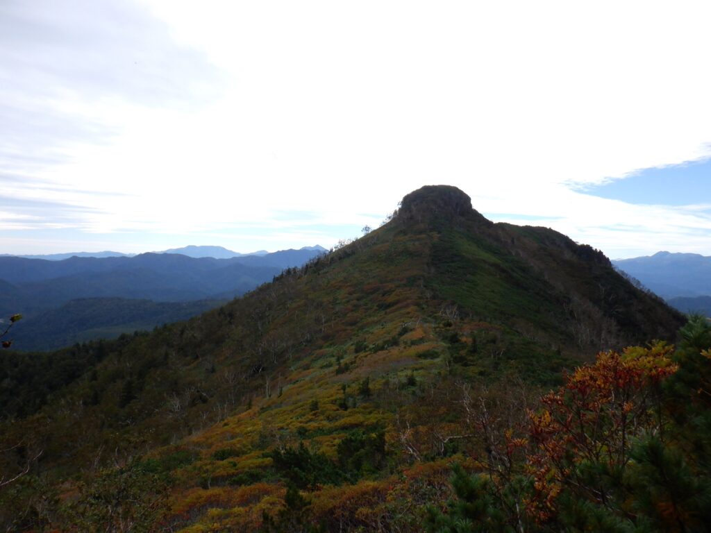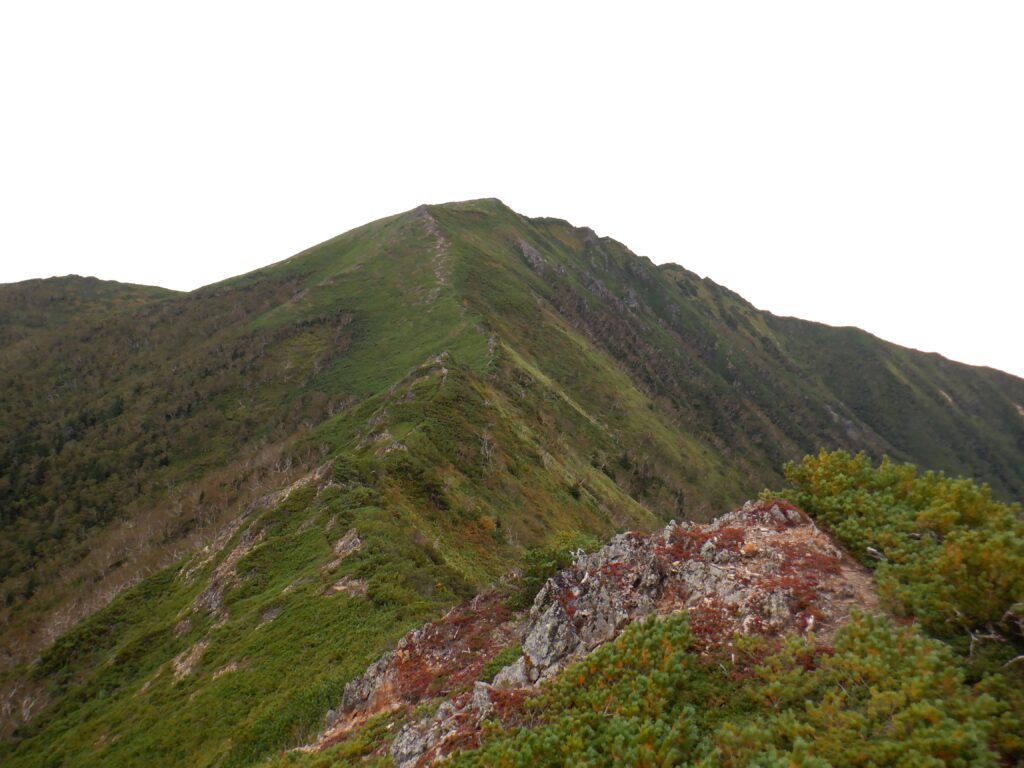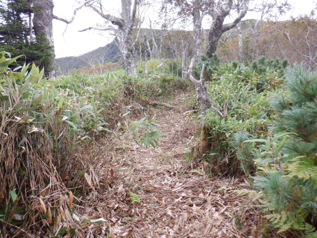 この標高を落としたところと、登るのも大変な急登部分の笹がきれいに刈られていて、とても歩きやすく明瞭な登山道となっていました。