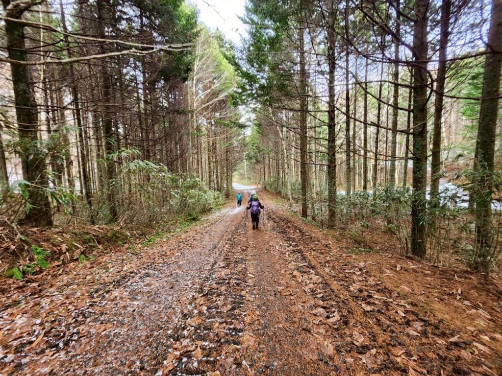 降水確率40%で天気を心配しましたが、少し雨にあたっただけで、晴れ間もあり良いトレキング日和でした。枯葉と雪がうっすら積もった遊歩道は歩きやすく、秋から冬に向かうこの時期を楽しむにはぴったりの山でした。
