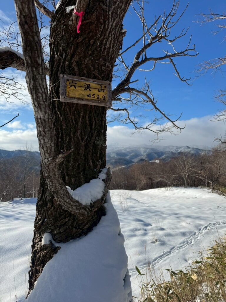 そして歩くこと50分ほどで、本日の1座目穴沢山に到着。