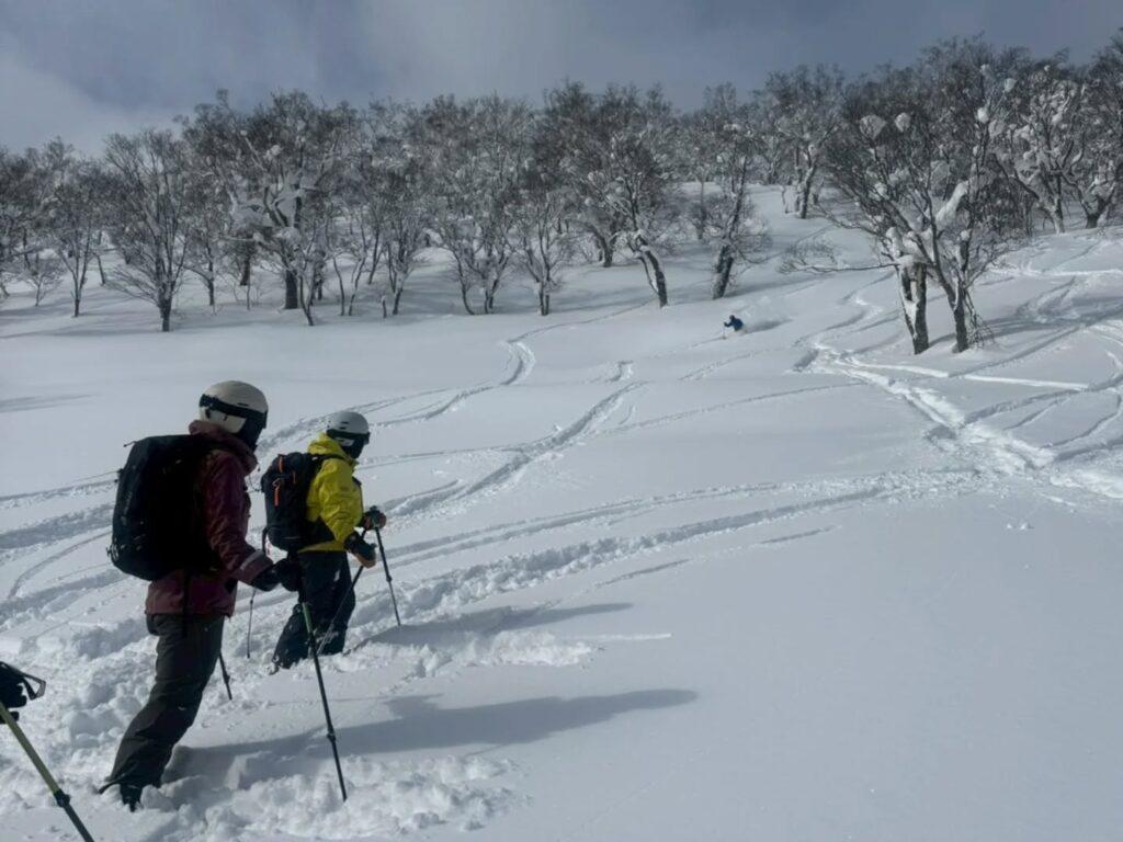 期待の新人2名と読図を行いながら登りましたが⋯途中で学生時代からの愛用コンパスのリングが行方不明となってしまったメンバーも…ハプニングもありつつ、アスピリンスノーの素晴らしい雪を楽しみました!