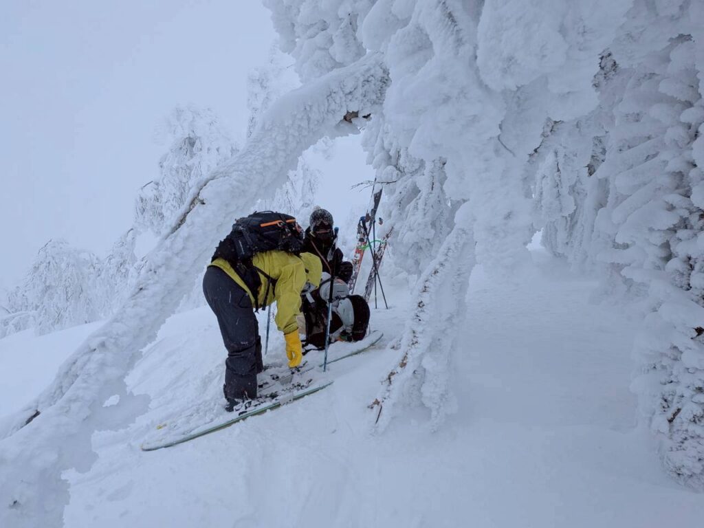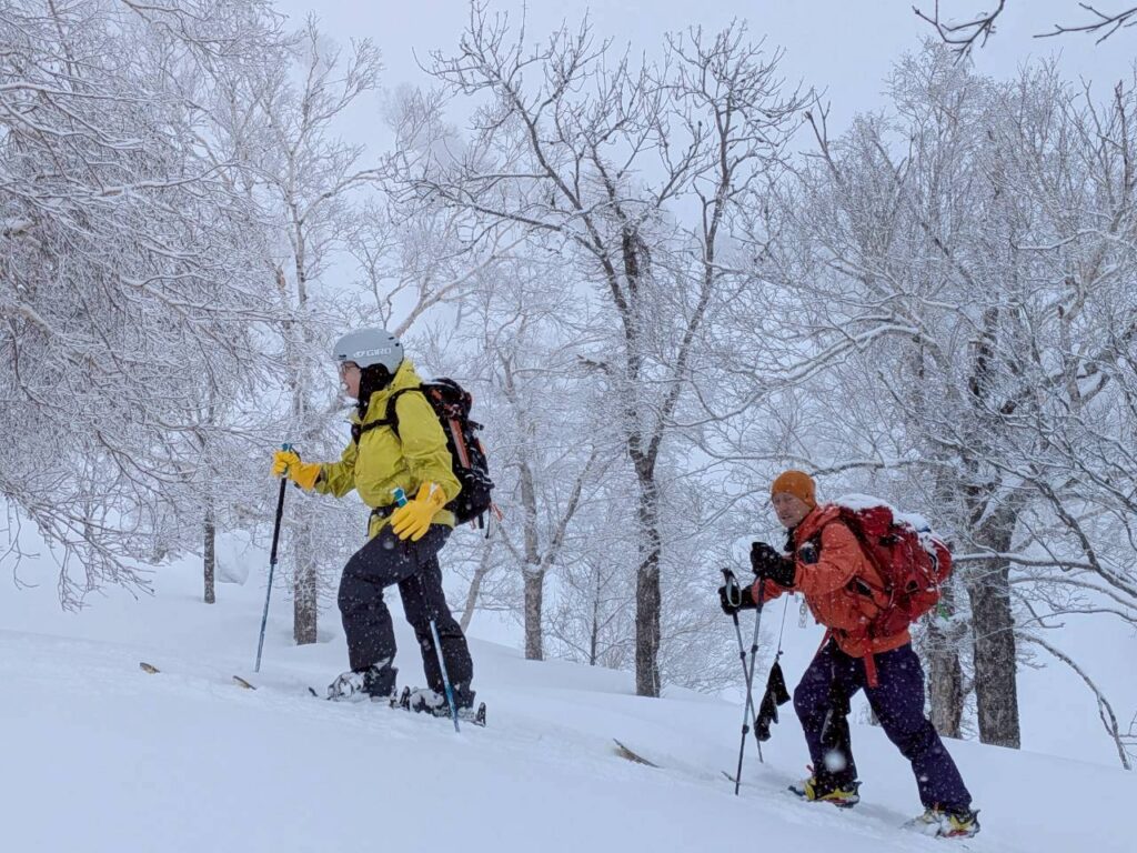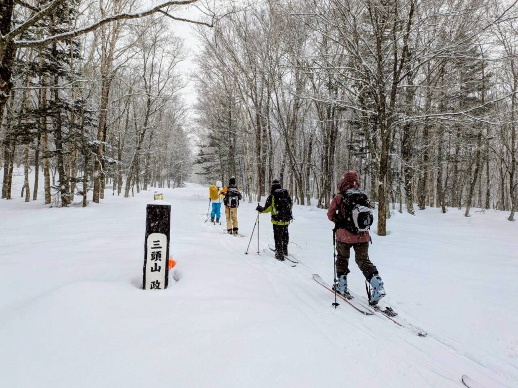 今年は雪不足なのか、渡渉地点のスノーブリッジも薄く1カ所はスキーを脱いで渡りました。