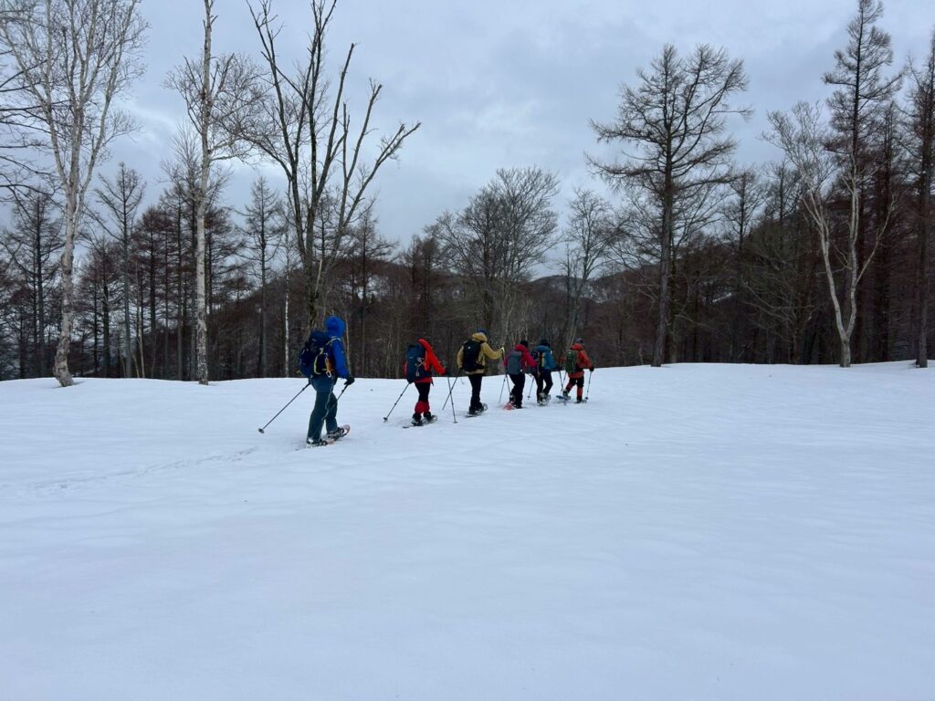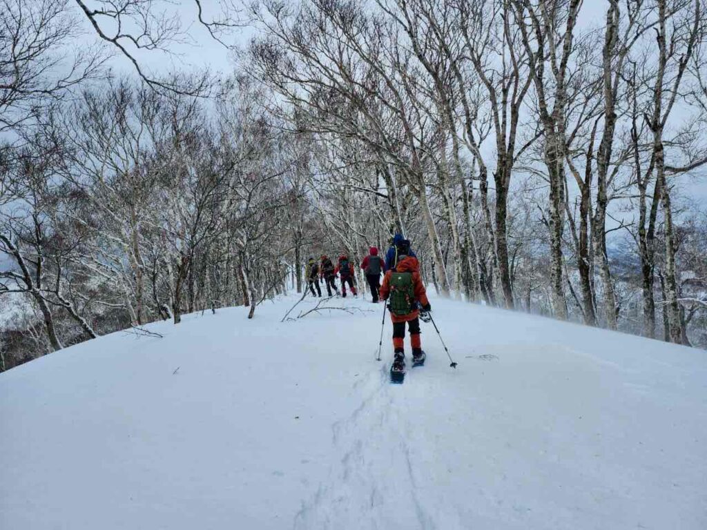 冷水嶺までは、ゆるやかな勾配で、久しぶりのスノーシューハイクをする私でも
