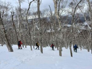 今年は雪不足なのか、渡渉地点のスノーブリッジも薄く1カ所はスキーを脱いで渡りました。
